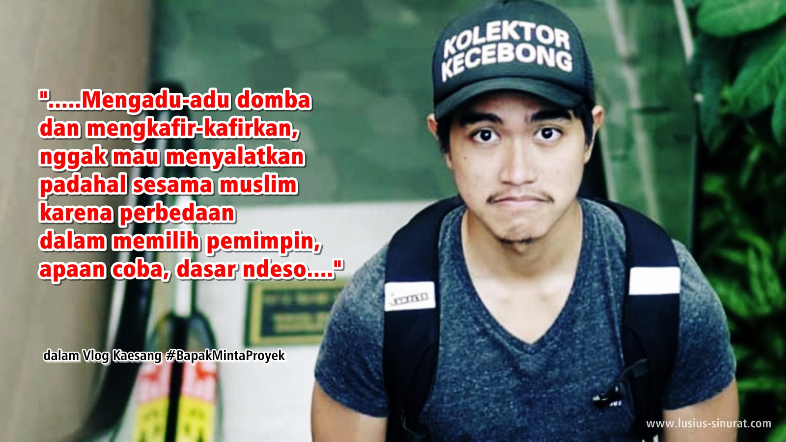 Katanya Kaesang melakukan ujaran kebencian dalam Vlog-nya. Isi lengkap ujaran kebencian yang dimaksud adalah ".....Mengadu-adu domba dan mengkafir-kafirkan, nggak mau menyalatkan padahal sesama muslim karena perbedaan dalam memilih pemimpin, apaan coba, dasar ndeso...." dalam video #BapakMintaProyek